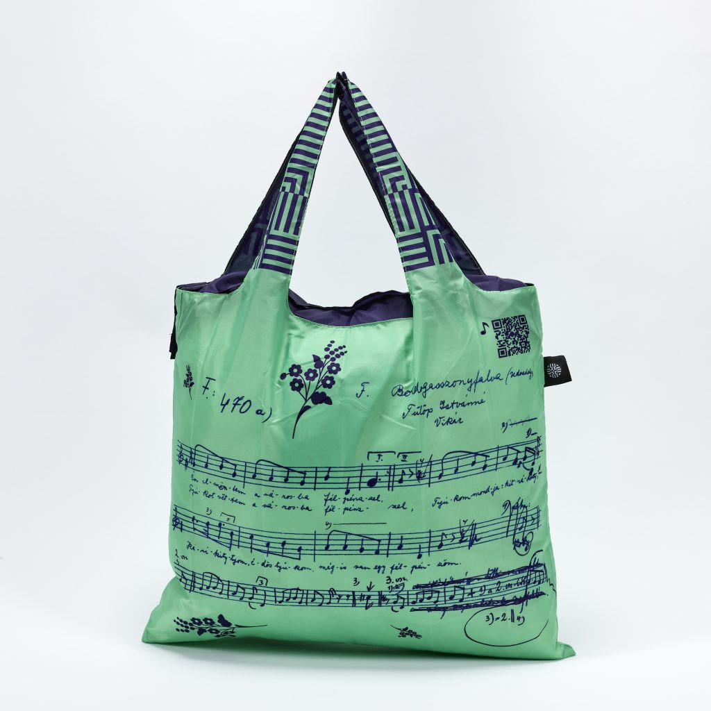 Az újrahasznosított bevásárlótáska a Néprajzi Múzeum Etnoshopjának egyik különleges darabja, amely nemcsak a fenntarthatósági törekvéseinket segíti, hanem a magyar kultúrát is a mindennapokba csempészi. Ez a “zenélő” bevásárlótáska – mely háromféle változatban is kapható – a magyar design és a magyar népdalok hagyományát ötvözi.